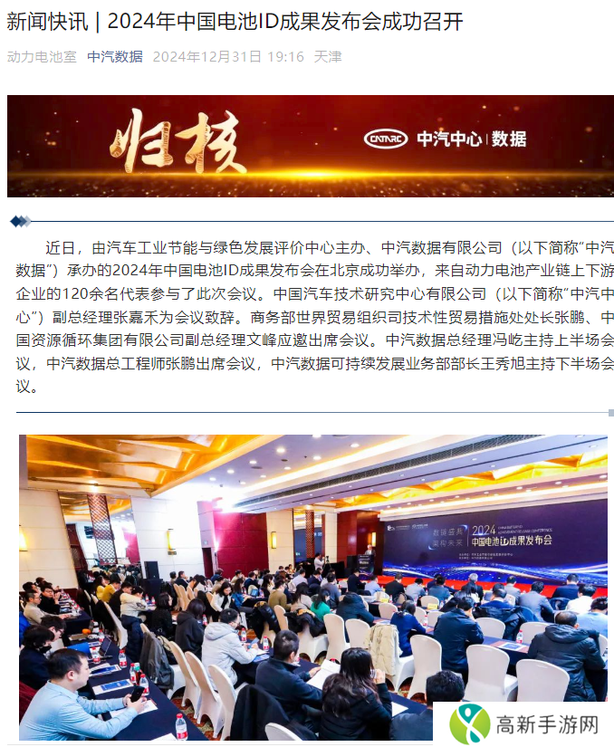 感谢本站网友 西窗旧事 的线索投递! 本站 1 月 1 日消息,由汽车工业节能与绿色发展评价中心主办、中汽数据有限公司承办的“2024 年中国电池 ID