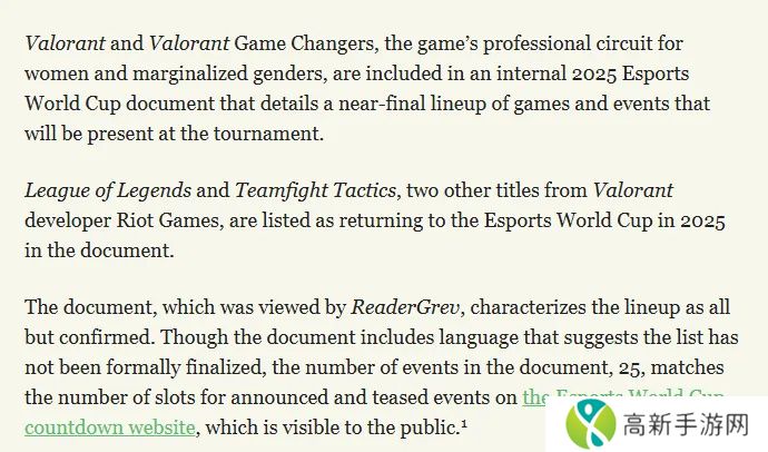 据外网博主Mikhail Klimentov爆料,他得到了一份内部文件显示无畏契约、英雄联盟、云顶之弈三款游戏都将成为2025沙特电竞世界杯的比赛项目。Mikhail Klimentov表示尽管文件中