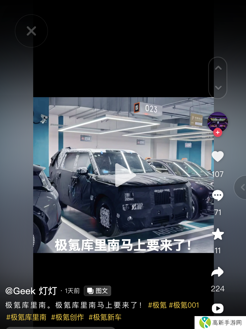 本站 12 月 30 日消息,博主“Geek 灯灯”昨日在抖音上晒出了两张极氪全新大型旗舰 SUV 的谍照。从外观来看,新车仍覆盖较厚的伪装,整体线条方正平直,前脸依稀可见竖条状的进气格栅。根据规划,