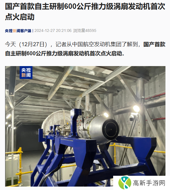 本站 12 月 27 日消息,据央视新闻报道,中国航空发动机集团开发的国产首款自研 600 公斤推力级涡扇发动机今日完成首次点火启动。本站查询官方资料获悉,该款涡扇发动机具有高空 1 5 万米以上、高