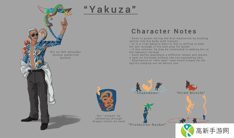 新英雄概念:Yakuza概念设计图Discord:StallordD作者所言:关于其中一个未完成英雄的技能机制或外观形象的另一个设想。我觉得打造一个袒胸露乳的老牌日本黑帮老大形象的这个想法本身就已经很