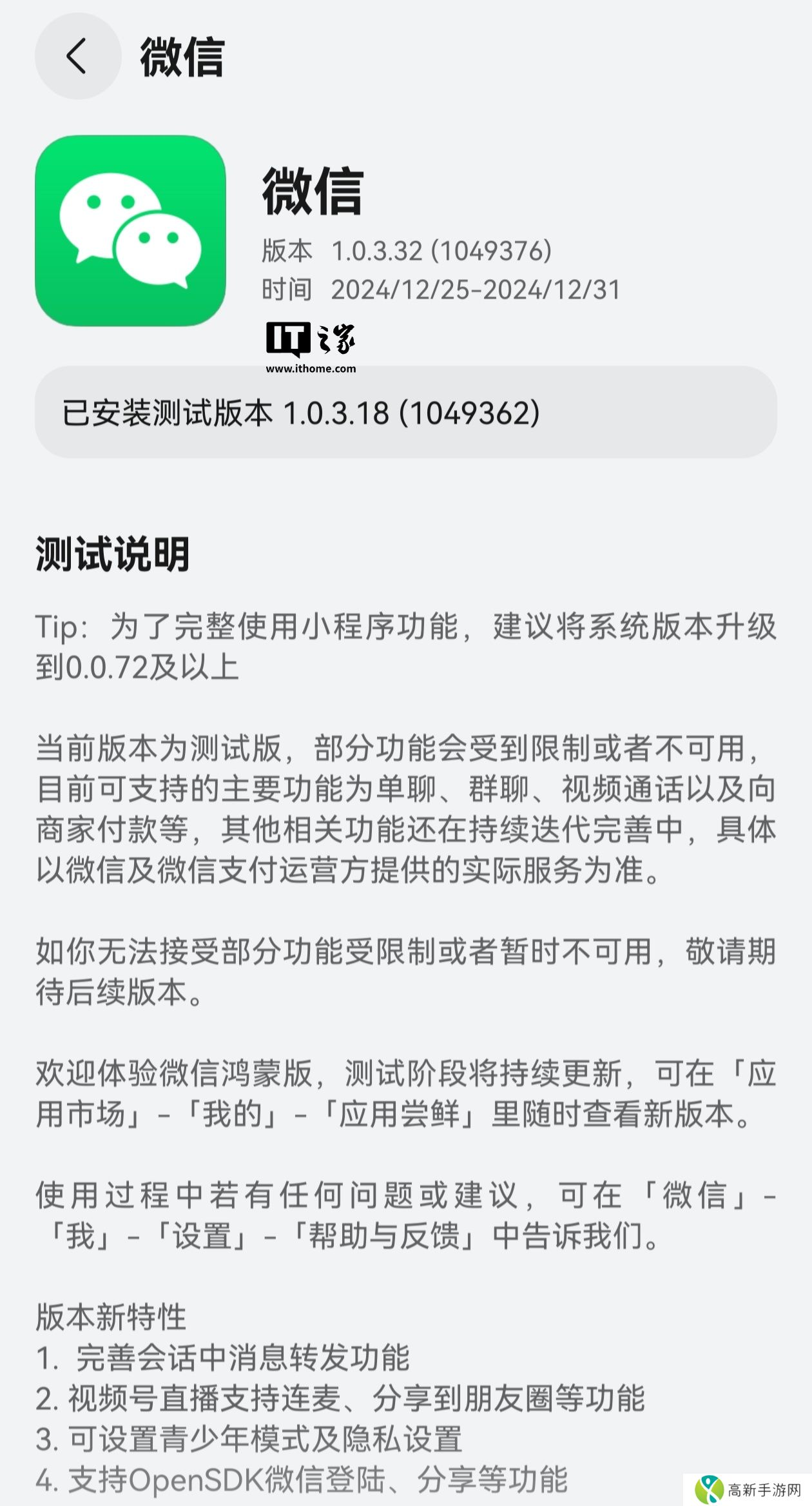 感谢本站网友 王二狗蛋32、猫言喵语、尺波电谢、PomeloLEE、大娃子、beebambop 的线索投递! 本站 12 月 25 日消息,纯血鸿蒙版微信