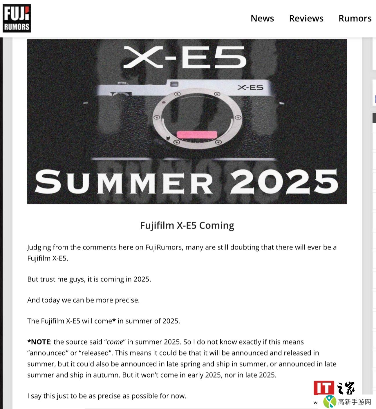 感谢本站网友 独立摄影师 的线索投递! 本站 12 月 13 日消息,外媒 Fujirumors 透露富士公司将于 2025 年(明年)夏季推出X-E5