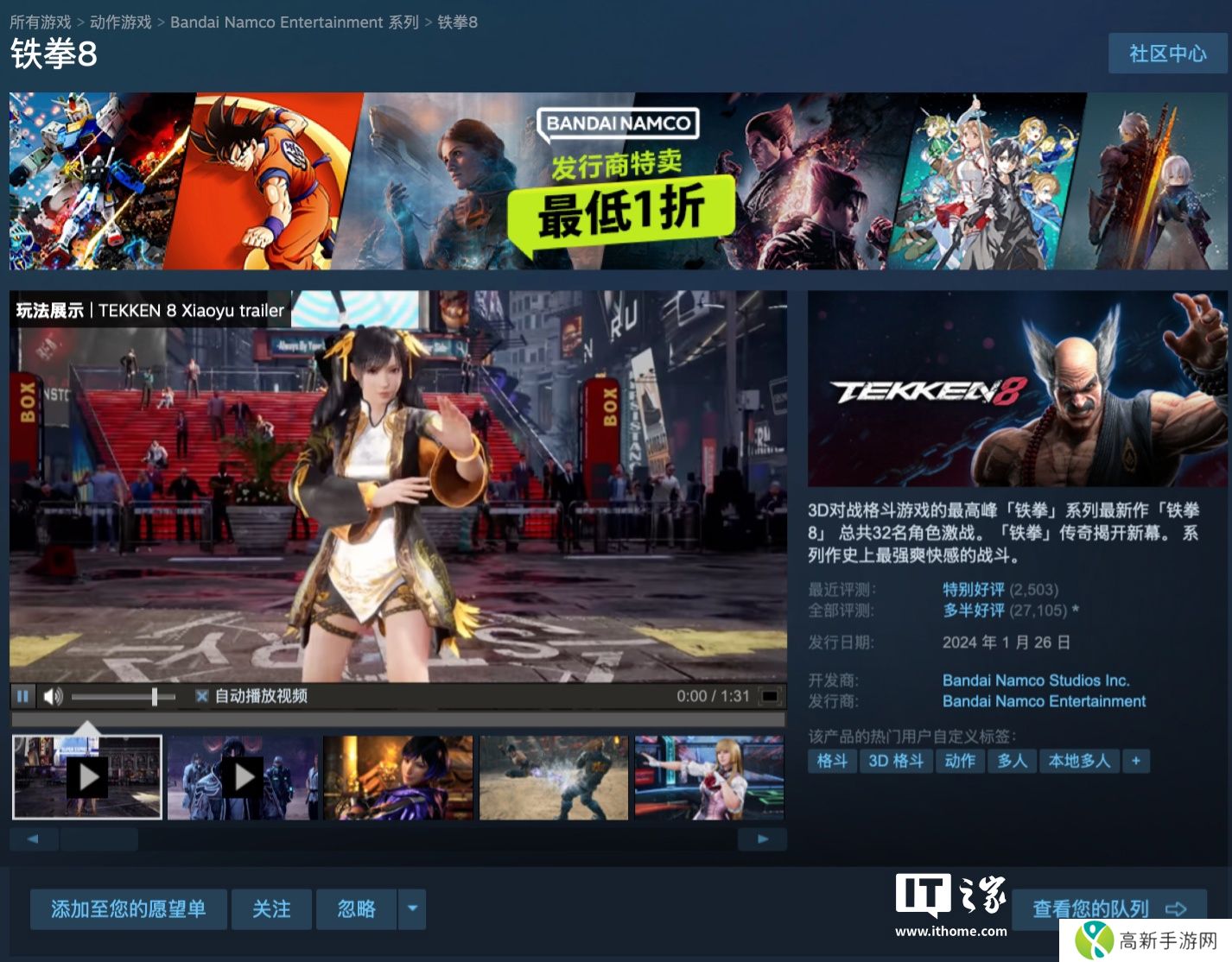 本站 12 月 13 日消息,在目前正在进行的TGA颁奖典礼中,《铁拳8(Tekken 8)》获得TGA 2024 最佳格斗奖。本作 2024 年 1 月 28 日登陆 PC、PS5、Xbox Ser