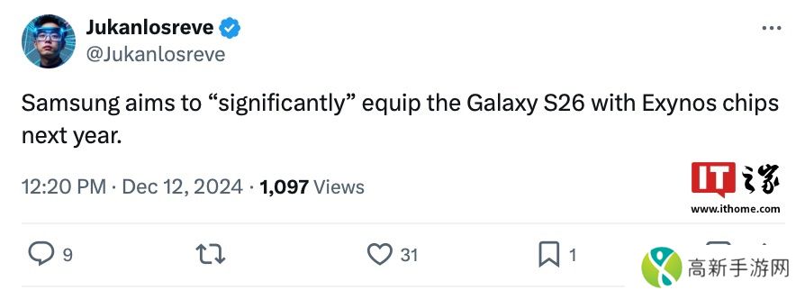 本站 12 月 13 日消息,消息源Jukanlosreve 认为三星有望为Galaxy S26系列手机“大量使用”自家Exynos芯片,即经过改进的 Exynos 2600 芯片,该版本芯片据称将采