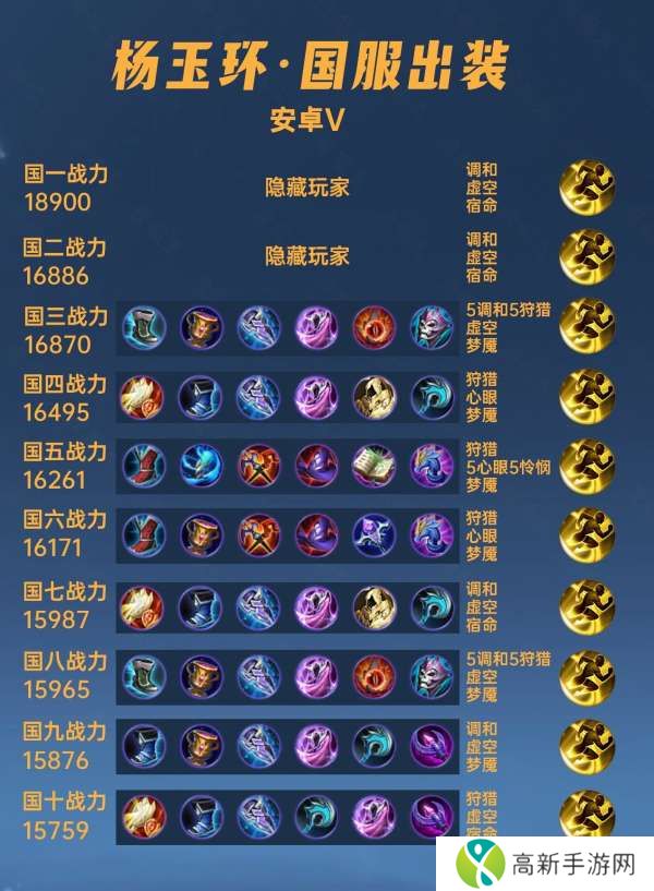 这篇文章我们来看一下40位国服杨玉环的出装铭文汇总。先做一个小统计,40位国服杨玉环,4位角色隐藏或角色迁移,2位走打野位,13位走中路,21位走辅助位。中路标准出装铭文冷静之靴,圣杯,巫师法杖,博学
