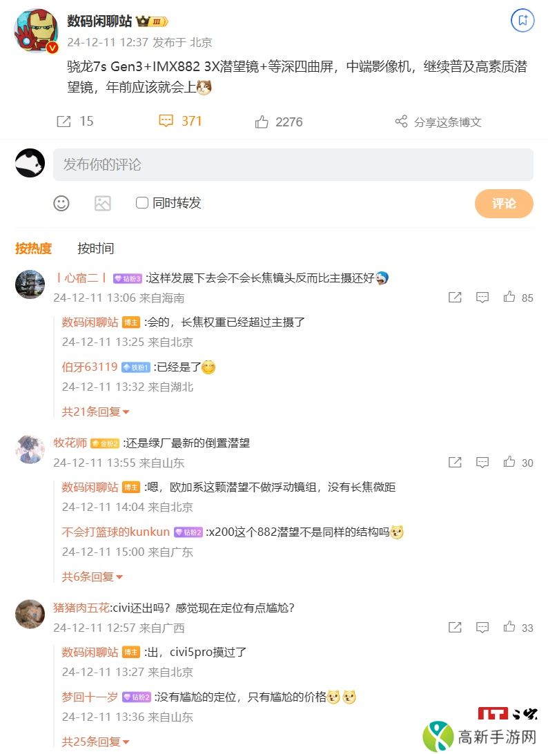 感谢本站网友 偏科骚黄4100只眼、软媒新友1933769 的线索投递! 本站 12 月 11 日消息,博主@数码闲聊站 今日发文透露,某厂年前将推出中端