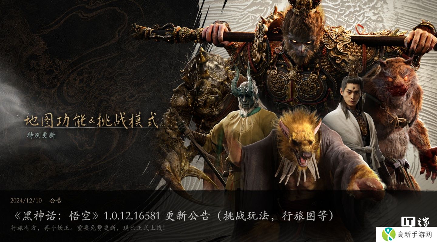 本站 12 月 11 日消息,《黑神话:悟空》游戏昨日在率先在 Epic 平台发布 1 0 12 16581 更新公告,新增挑战玩法、行旅图等内容。本站注意到,游戏《黑神话:悟空》官方今日在腾讯 We
