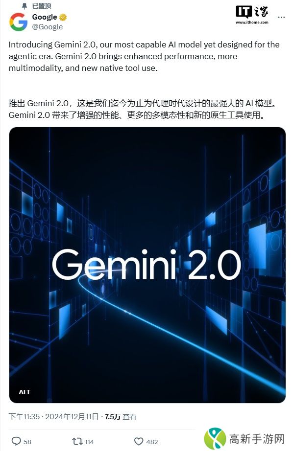 感谢本站网友 風見暉一 的线索投递! 本站 12 月 11 日消息,谷歌正式发布 Gemini 2 0,号称是谷歌迄今为止功能最强的 AI 模型,带来了更