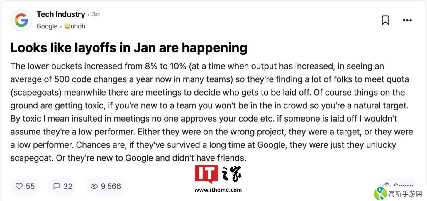 感谢本站网友 华南吴彦祖 的线索投递! 本站 12 月 12 日消息,根据职场匿名论坛 Team Blind 上最新流传的热议帖子,谷歌员工担忧公司将于明