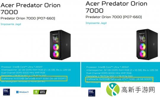 Acer Predator Orion 7000系列台式机泄露广告确认,即将发布的RTX 5080和RTX 5090显卡分别搭载16GB和32GB GDDR7显存。RTX 5080将有10752个CU