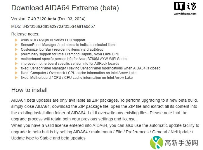 本站 12 月 7 日消息,AIDA64 Extreme 于 12 月 3 日更新了 7 40 7120 beta测试版,提供对英特尔下一代数据中心和消费级 CPU 的初步支持。本站翻译发行说明如下: