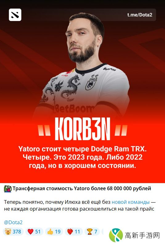 近日,雪碧经理Korb3n透露队伍为Yatoro设置的转会费是68,000,000卢布,折合成人民币大概是500万左右。这身价放以前恐怕国内队伍都会疯抢,但这两年刀塔职业环境确实不行,TI奖金也下来了
