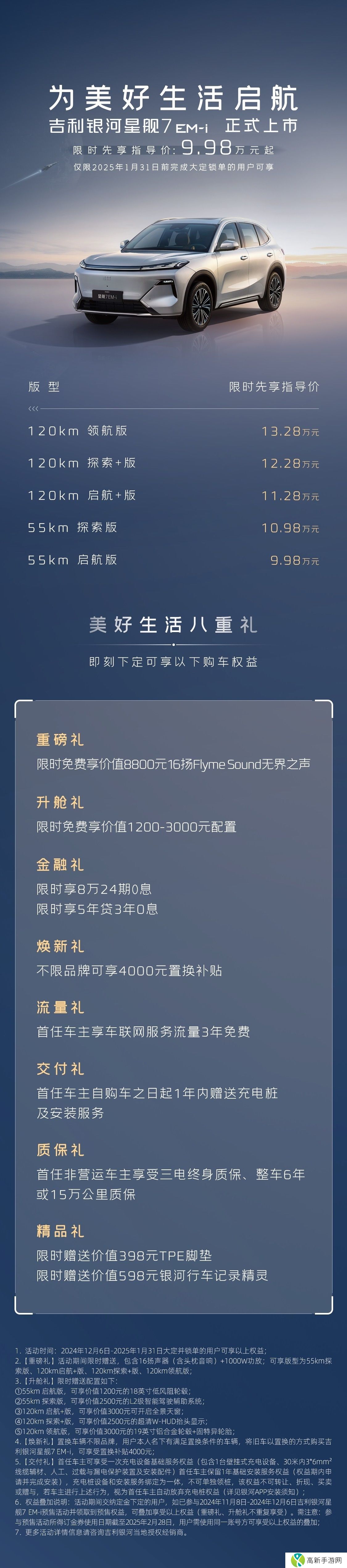 感谢本站网友 头像不换改名、又可以改名咯 的线索投递! 本站 12 月 6 日消息,吉利银河星舰 7 EM-i 今晚正式宣告上市,官方指导价10 98 万