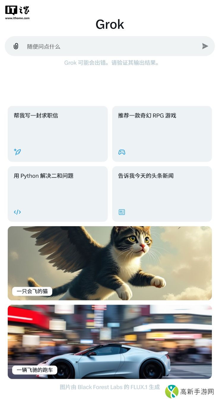 本站 12 月 7 日消息,马斯克的 AI 聊天机器人 Grok 已向 X 平台的免费用户开放。从周五(昨日)起,多名用户陆续发现了这一新功能 —— 免费用户每两小时可向 Grok 发送最多 10 条