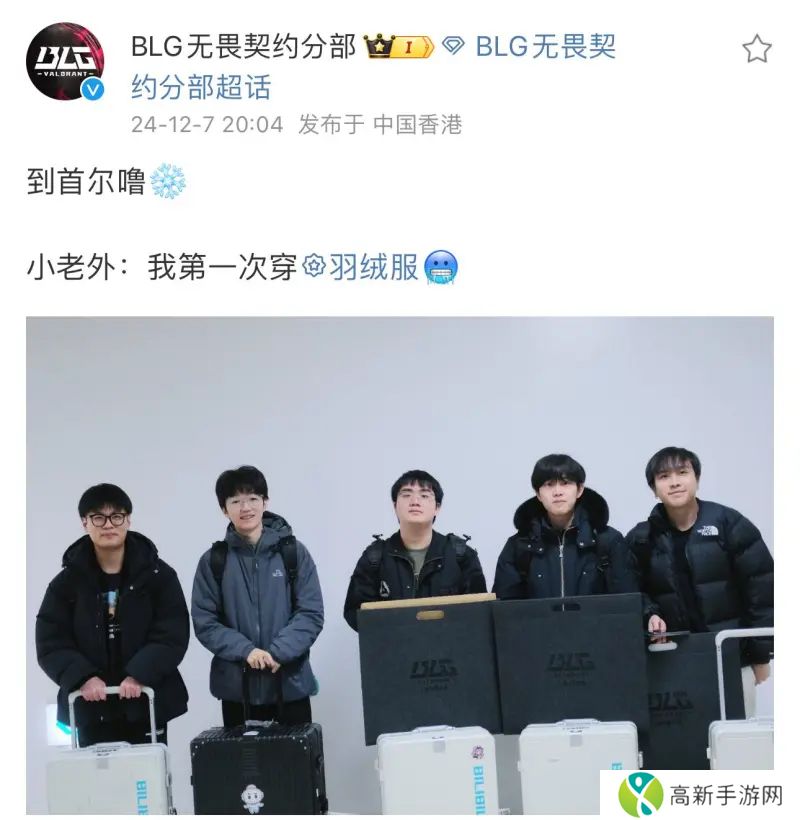 日前,BLG俱乐部晒出了选手抵达韩国合影并配文:到首尔噜!小老外:我第一次穿羽绒服。本次BLG来到首尔,参加12月10日至15日的韩国SOOP VALORANT LEAGUE锦标赛,期待BLG的精彩表