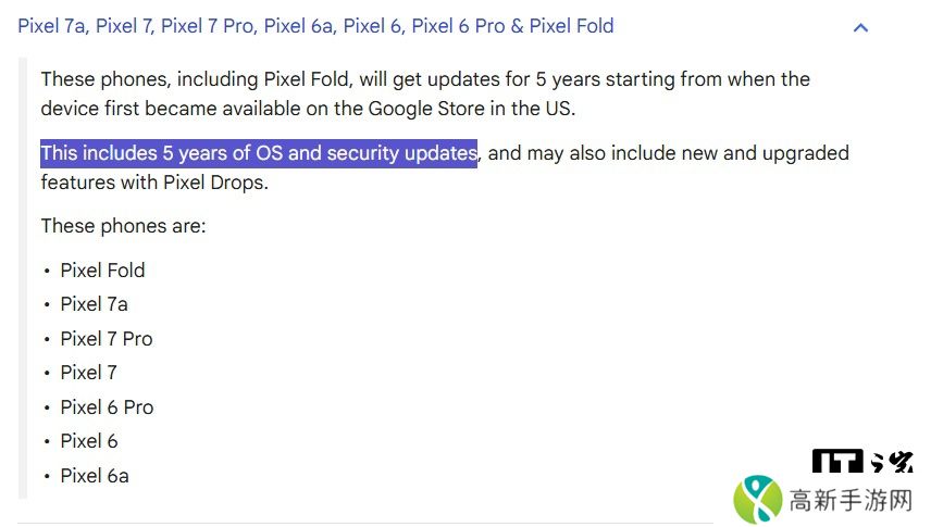 本站 12 月 6 日消息,谷歌现已为其设备支持页面进行更新,延长了 Pixel 6 系列、Pixel 7 系列和 Pixel Fold 的支持寿命,谷歌现在保证这些设备在生命周期中将得到额外的安卓系