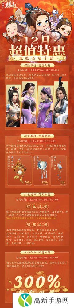 岁末将至,寒风瑟瑟,《剑网3缘起》十二月特惠活动火热开启!美妆盛典优惠回馈,崭新衣装琳琅满目,还有超多福利惊喜等你获取,快来一起看看吧!【烟花返场贺盛典 捏脸半价美妆随心配】一年一度的《剑网3缘起》十