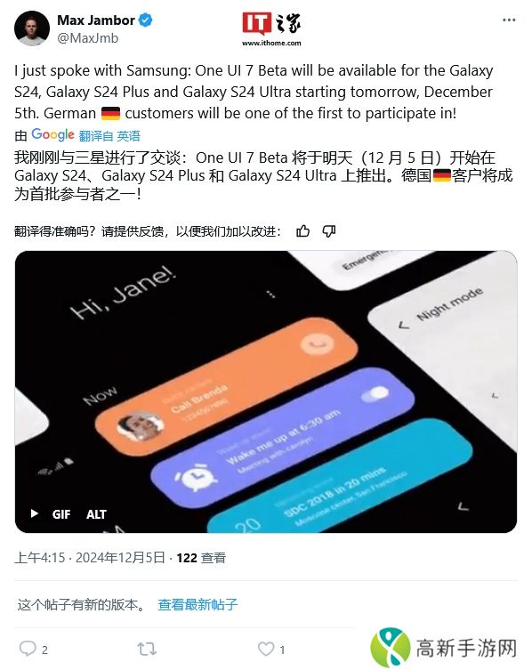 本站 12 月 5 日消息,多方消息源表明,三星计划今天(12 月 5 日)启动 One UI 7 测试版更新,三星 Galaxy S24 系列手机将率先获得推送,Galaxy S23 及其它机型会后