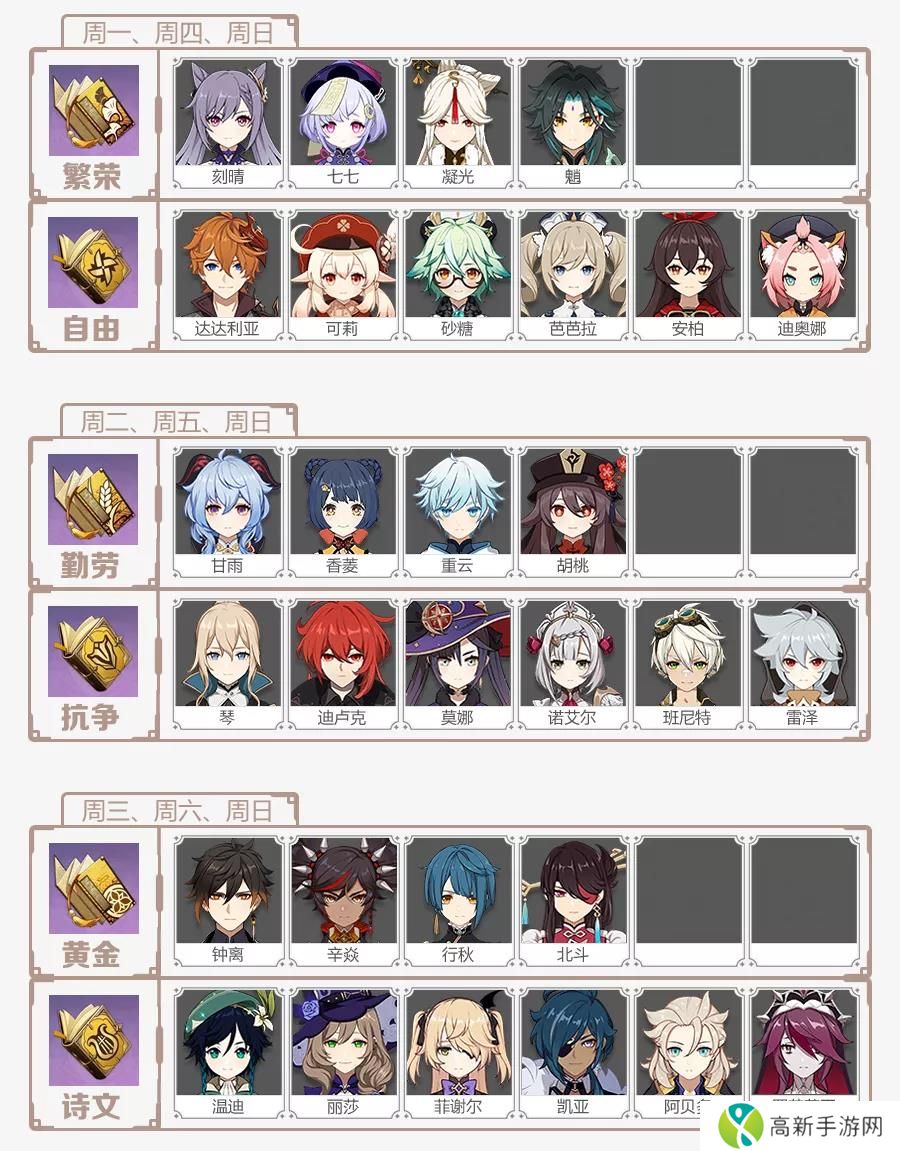 原神1 4本版中新角色罗莎莉亚大家都抽到了吗?她的天赋材料是很多玩家需求的重点,本次就为大家带来了原神1 4角色天赋材料需求表,包括各角色天赋材料时间说明,非常全面的内容,天赋还没升满的朋友可以参考,