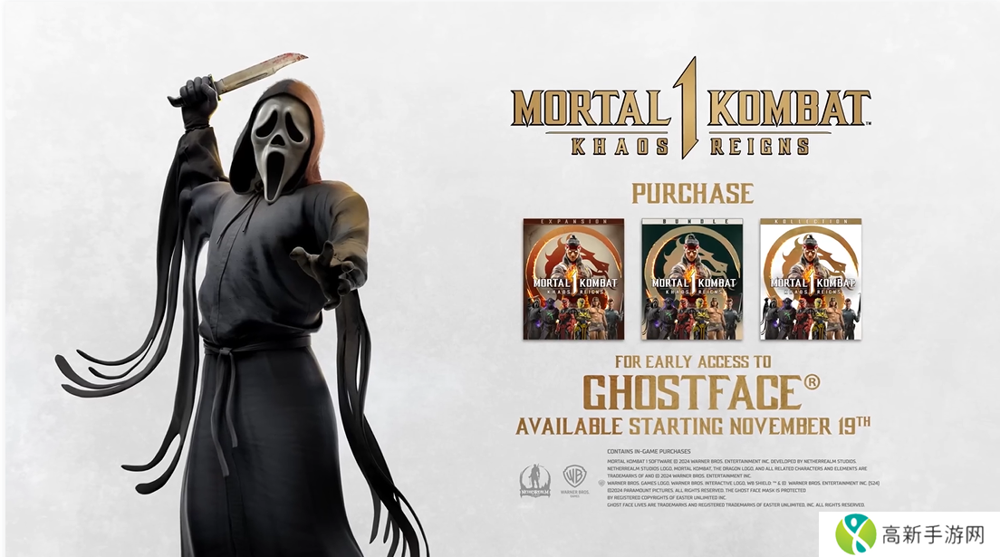 《真人快打1》的资料片「混沌统治」已于今年9月发布,它带来了全新的故事模式和三位新角色,并承诺不久之后会有另外三名客串DLC角色加入。这批角色中的第一个是电影《惊声尖叫》中的“鬼面”杀手,在该角色