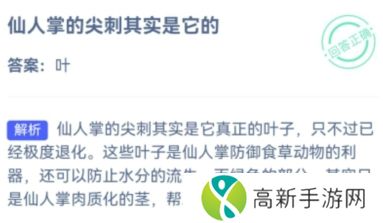 小鸡庄园9月13日的问题是关于仙人掌的,不论是仙人掌还是仙人球,各种品种表面都会有尖刺,不过会根据品种不同有不同的外型,这些尖刺实际上是仙人掌的叶子,不过由于沙漠中环境比较极端恶劣,因此最终退化为针刺