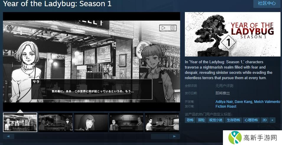 今日(11月13日),恐怖惊悚视觉小说《瓢虫之年:第一季》Steam页面开放,发售日待定,暂不支持简体中文。 游戏介绍: 沉浸在《瓢虫之年:第一季》中,这是一款融合了惊悚悬疑和精美艺术的恐怖惊悚视觉