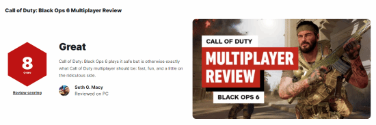 《使命召唤21:黑色行动6》已发售几天时间,在体验完单人战役以后,很多玩家也都投入到了多人模式中。IGN也发布了对多人模式的评测,评测者为其打出8分好评,表示这是该系列多人模式该有的样子。IGN评分