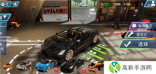 1、打开游戏先进入到车库。挑选一辆心仪的座驾,没有的话可以先买车;