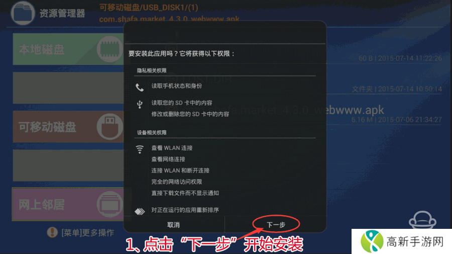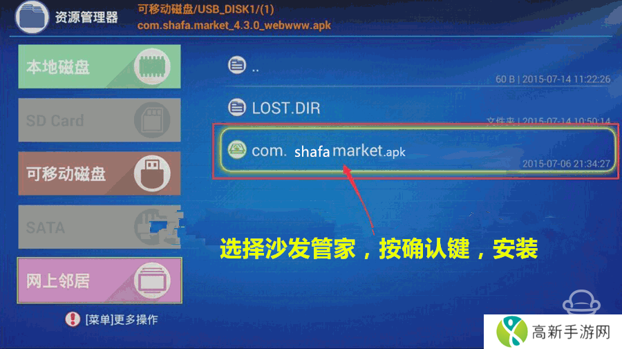 3、打开【U盘设备】,按照提示找到沙发管家apk文件,点击安装