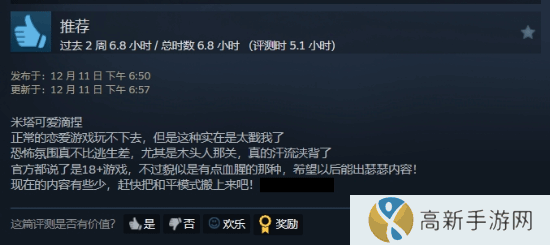 有网友表示,这是近年来很有想法和创意的一款心灵恐怖游戏,甚至有玩家警告后来者:“这玩意的恐怖程度直接对标《逃生2》”。不过也有部分玩家表示,虽然游戏的各方面都不错,但结局却有些不尽如人意。