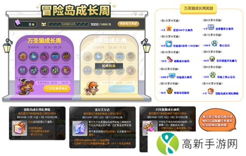 即日起至11月12日,玩家可接取[冒险岛成长周]万圣猫的成长周!任务,消灭1000个等级范围内怪物,就能获得万圣猫的成长周的图章领取对应奖励,同时还有万圣猫优惠券和经验值交换券等好礼相送!