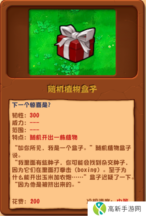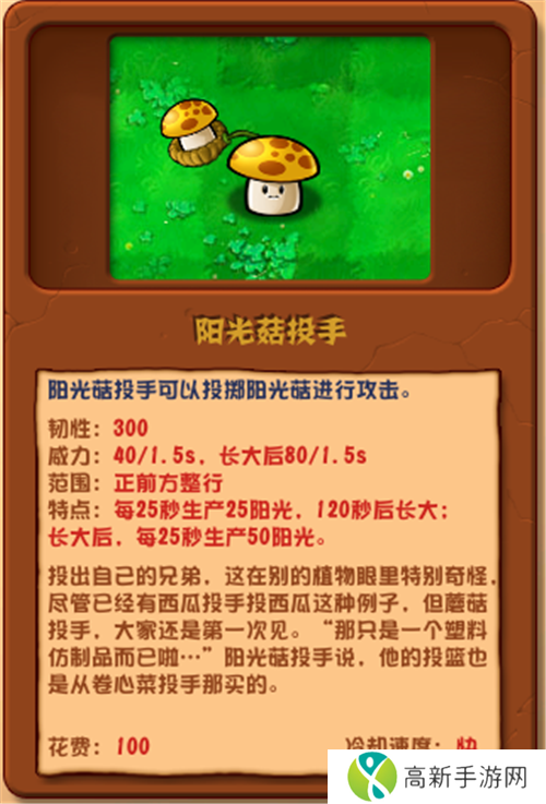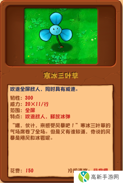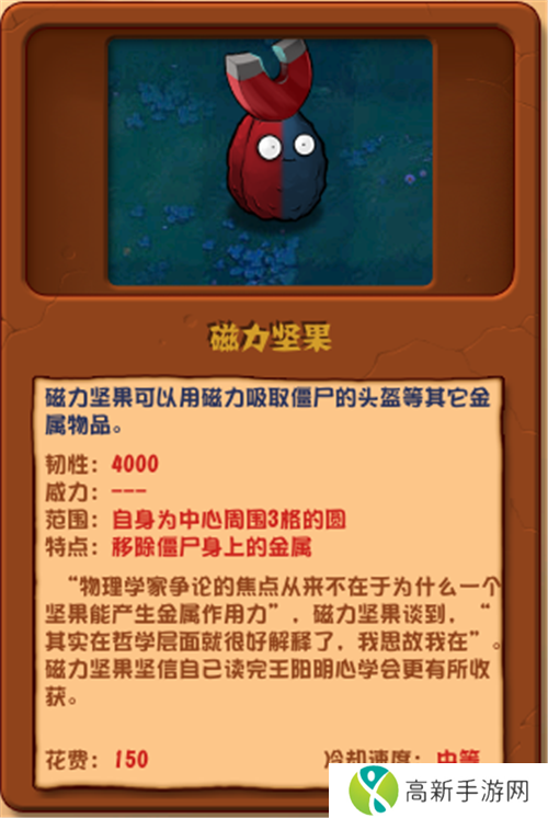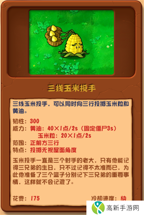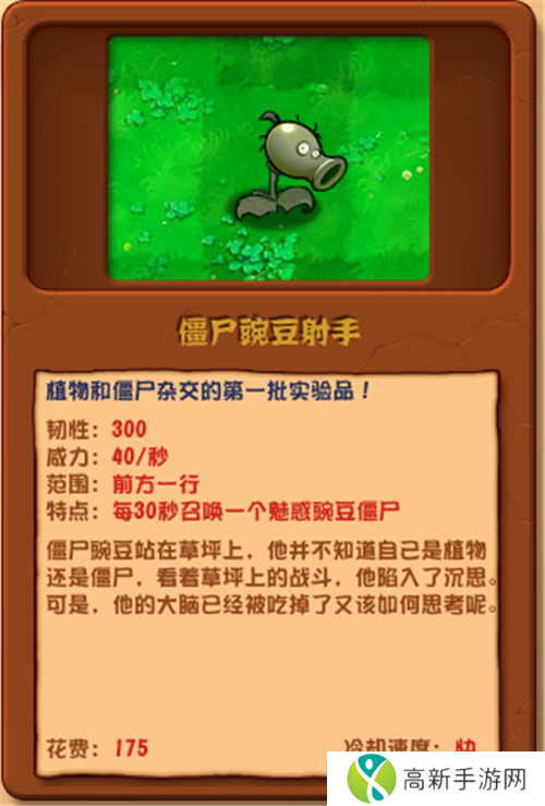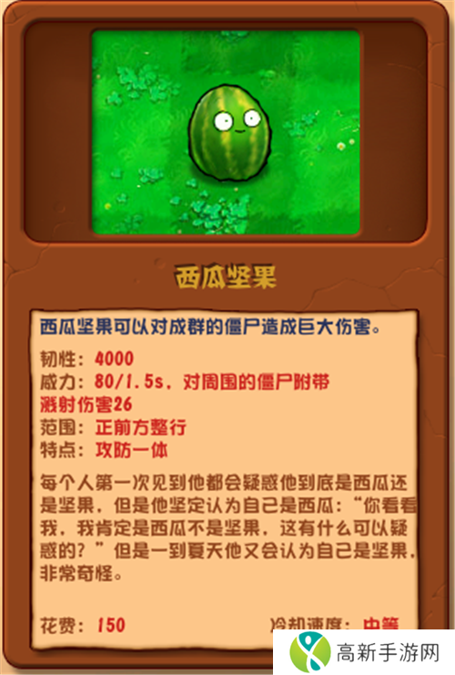 点评:硬度可观,对豌豆许愿池和香蒲类有奇效,战术辅助不可或缺。