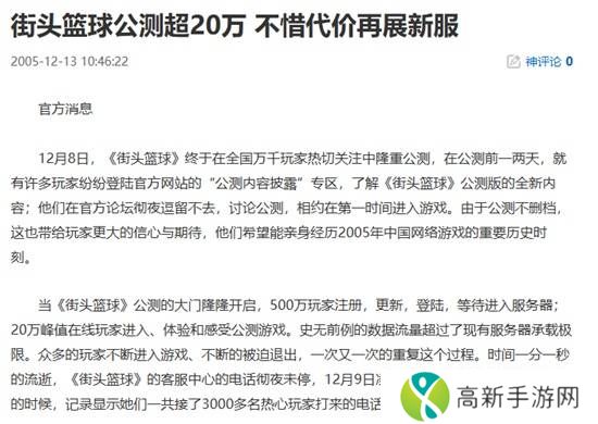 早在入坑之前,我就听说过《街头篮球》的鼎鼎威名。光拿数据来说,在那个年代,《街头篮球》仅在公测当天便创下了20万玩家同时在线的记录,公测后没几天便坐拥500万注册玩家,成了那些年游戏界的一大热门。而在实际体感上,便是挤房间成了当时《街头篮球》玩家们的日常,满人的房间是游戏的常态。
