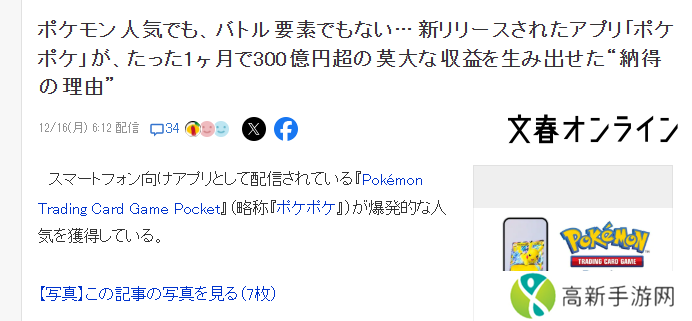 宝可梦公司、Creatures和DeNA Co.三家合作开发的手游《宝可梦集换式卡牌Pocket》上个月推出后,迅速爆火,一个月获得了2亿美元营收,一起来看看日媒的分析。