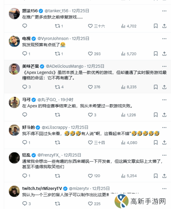 今年年初,在接受采访时,多位行业人士、《Apex》主播对游戏的健康状况表示担忧,而随着23年圣诞节活动的结束,EA方面并未采取太多方式来消除玩家的担忧。