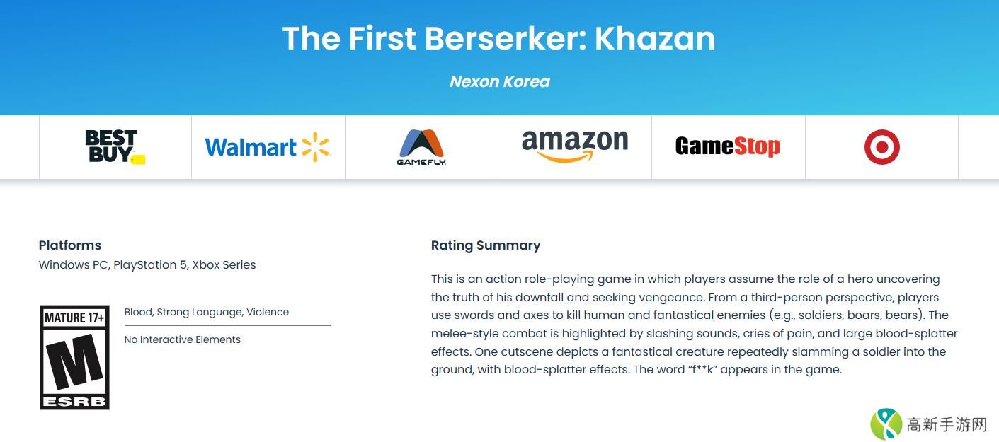 《DNF》世界观动作角色扮演游戏《第一狂战士:卡赞》现已通过ESRB评级,级别为M(17+),平台为PS5、Xbox Series X|S和PC,包含了血腥、粗语、暴力元素,该作预计将于2025年发售。