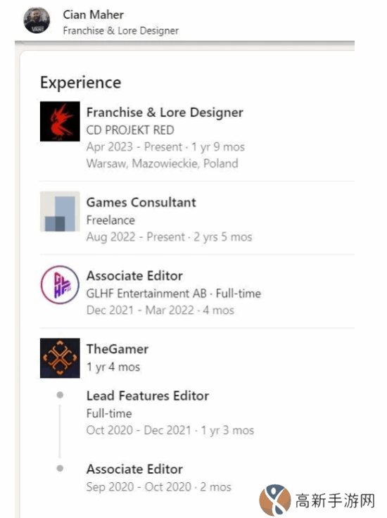 近日Reddit上有网友爆料称,CDPR的IP和世界观设计师Cian Maher曾在外媒The gamer任职,担任游戏记者。