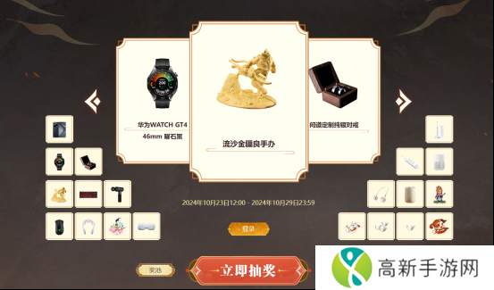 为了激励大家踊跃参赛,所有报名并参与比赛的玩家都将获得1次基础抽奖机会。随后,每晋级一轮,玩家将额外获得1次抽奖机会。每位玩家的账号最多可累积获得10次。比赛结束后,次日即可登录页面进行抽奖。奖品包括HUAWEI Pura 70手机、华为WATCH GT4手表、问道定制纯银对戒等。