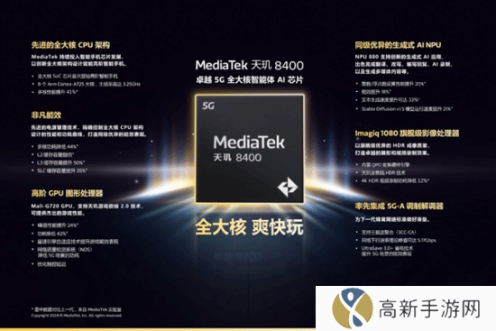 当然了,联发科一直以来的霸榜的强项AI性能也没有落下,天玑8400搭载了第八代旗舰同级AI处理器NPU 880,与全大核CPU协同运算,实现整数/浮点数性能、大语言模型处理速度、生图速度大幅提升,为AI体验打造坚实算力基础。