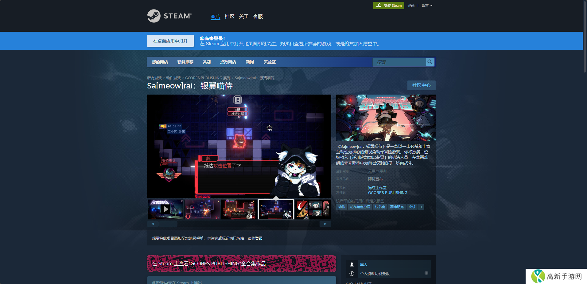 Steam平台需要先安装Steam平台,之后注册一个账号登录,然后搜索“Sa[meow]rai:银翼喵侍”进入商店购买页面。