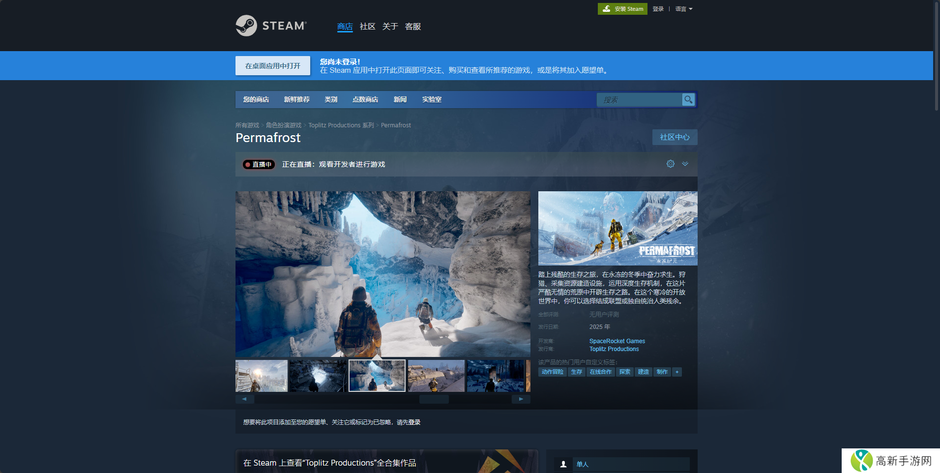 Steam平台需要先安装Steam平台,之后注册一个账号登录,然后搜索“Permafrost”进入商店购买页面。