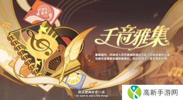 音游,常驻活动。除了使用之前已经获得的乐器进行演奏,还可以游玩和编辑官方和其他玩家制作的曲谱,可以去纳塔流泉之众可以购买两种新乐器。