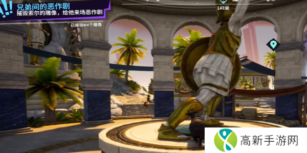 2、抵达目的地后,可在前方看到一个雕像,需要将这个雕像摧毁。