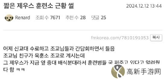 值得一提的是,此前还有韩国网友分享称,Zeus在**中被分到了打饭分队,专门负责给训练兵们盛汤。