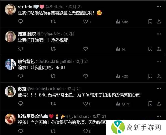 《最终幻想7 重生》蒂法的英文配音演员布丽特·巴伦(Britt Baron)在2024年Grand Game Awards获得最佳配角奖。Britt Baron因英配蒂法而深受英文区玩家的喜爱。小姐