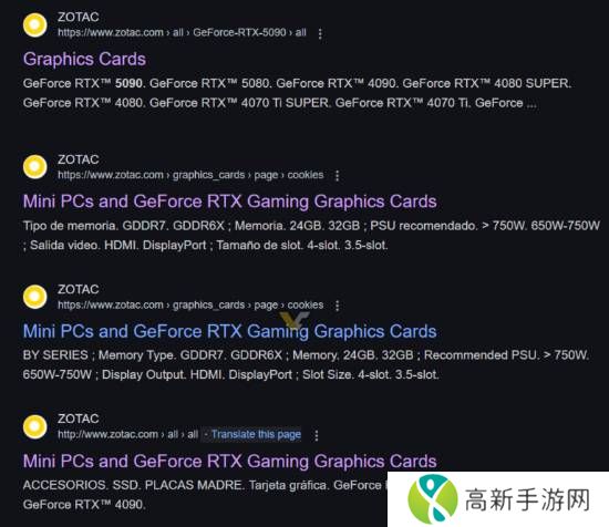 在videocardz常规使用CSL工具(如谷歌)进行泄露监测时,意外发现ZOTAC已经在官网上提前列出了新的GPU系列。尽管索泰很快删除了这些信息,但videocardz仍然找到了下一代GPU的相关条目。