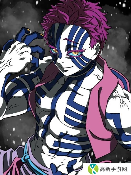 事实上,猗窝座的血鬼术术式的雪花图案就是他人类时期的未婚妻恋雪的发簪的样子,而桃红的发色则与恋雪的和服颜色相同,招式的名称则是取自生前和恋雪一同观看过的烟火的名字。
