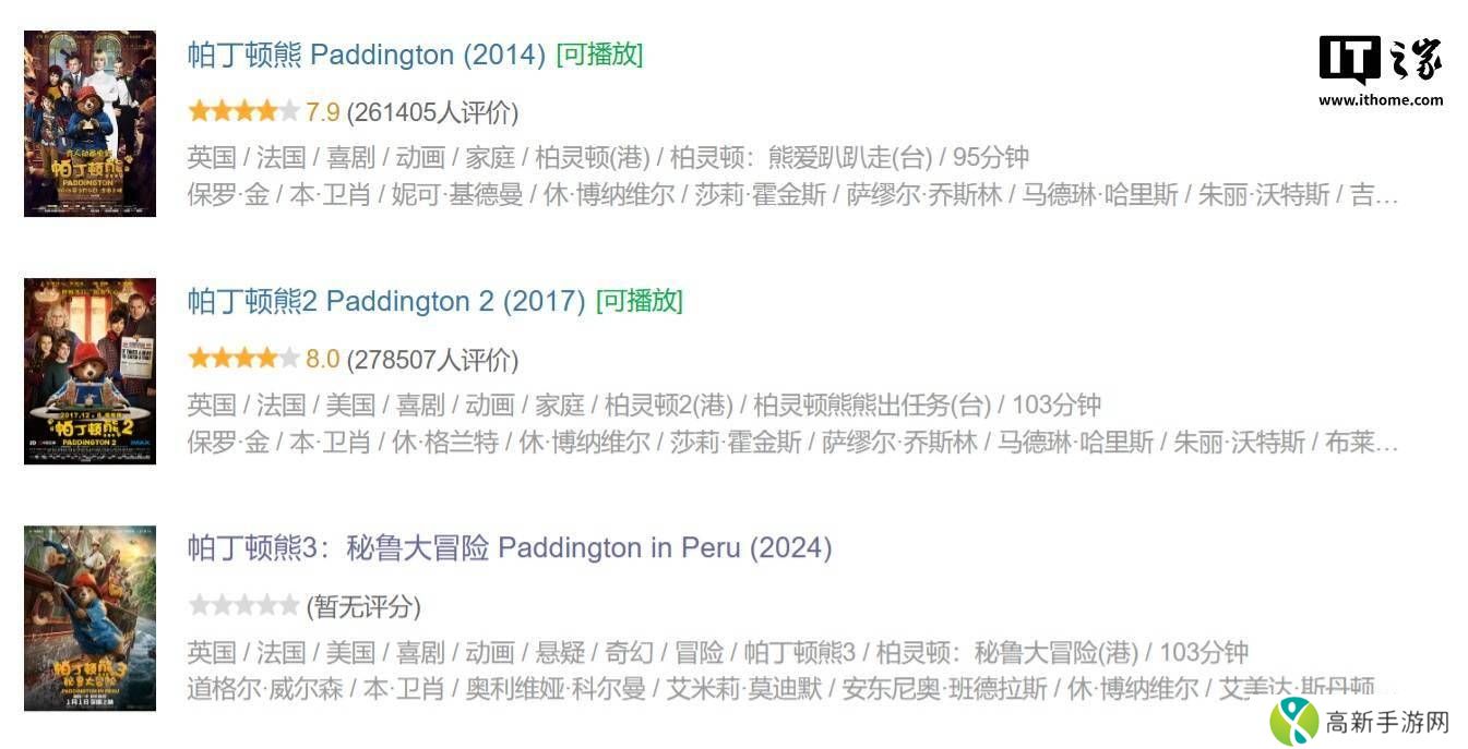 据悉,《帕丁顿熊3:秘鲁大冒险》早在11月8日就已在英国率先上映,并收获了不错的反响。目前,该影片在IMDB上的评分达到了6.8分(满分10分),虽然豆瓣上尚未有评分,但根据前两部的口碑,相信这部新作也不会让观众失望。