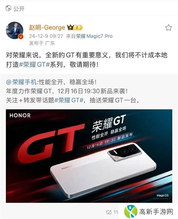 在万千网友的热切期盼中,荣耀终于在12月9日正式宣布,将于16日举办新品发布会,届时,备受瞩目的荣耀GT系列将正式登场。赵明在微博上发文,明确表示将不惜一切代价打造荣耀GT系列,这无疑给所有期待者吃了一颗定心丸。